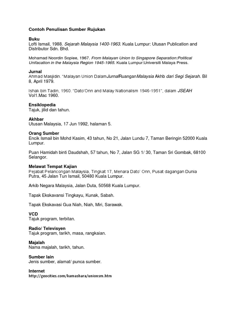 Contoh Sumber Rujukan Buku Teks Tingkatan 1 Sejarah